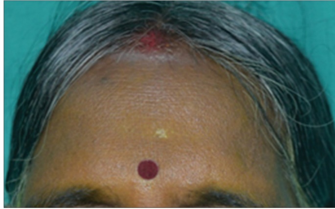 Figure 1. Traditional application of Turmeric as a cosmetic (facial powder) in India. |
